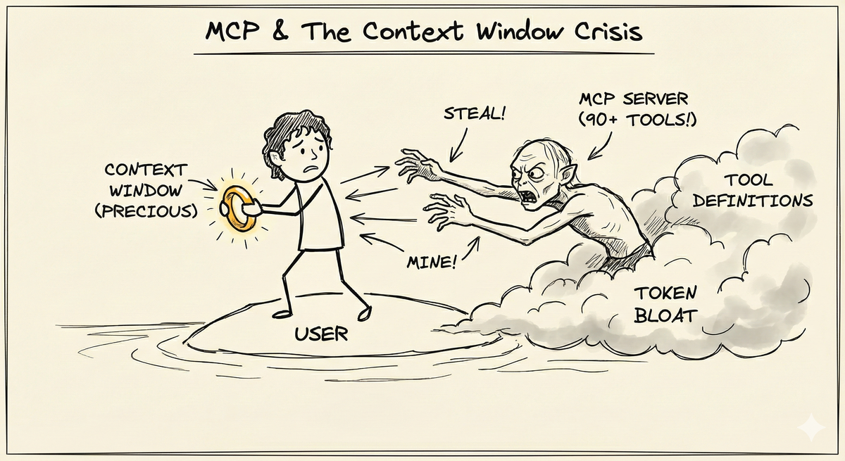 Think of it like, you’re Frodo protecting your ring (context window) while Gollum (MCP servers with lot of tools) constantly trying to steal your precious ring (context window).